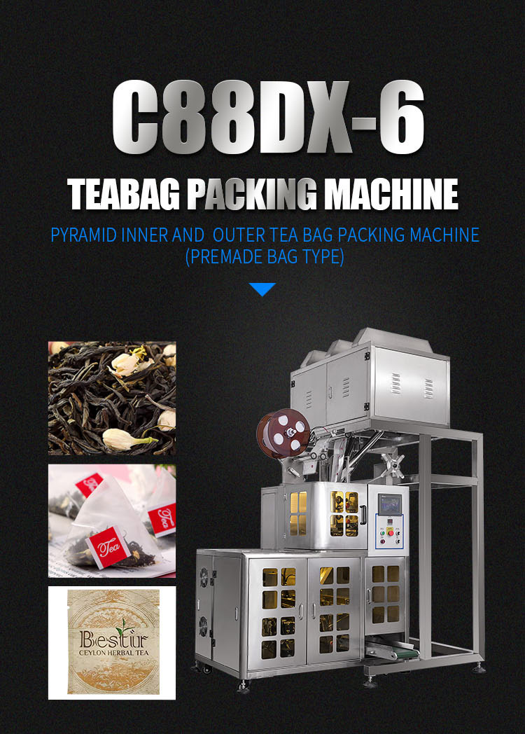 C88DX Biodegradable pla pyramid tea bag packing machine with Premade Pouch |