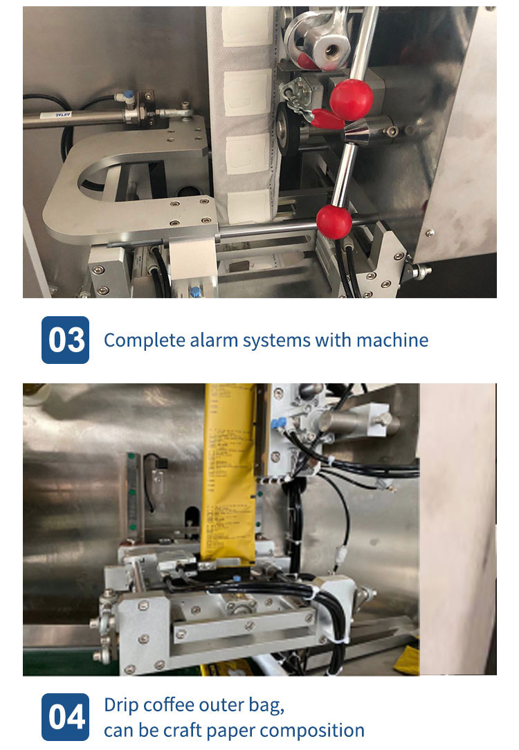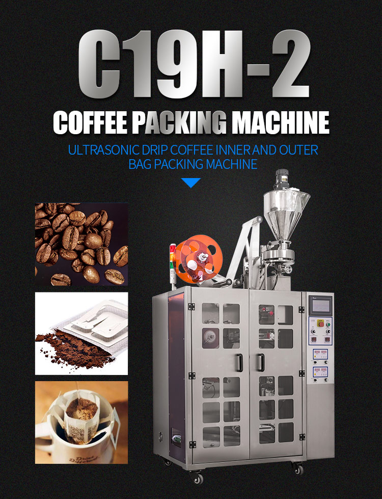 C19H-2 High speed drip coffee packaging machine can automatically pack the hanging ear drip coffee bag which is a kind of portable coffee bag and sealed with drip coffee filter bag and ground coffee, packing roasted drip coffee bag, ground coffee bag with thread and tag: